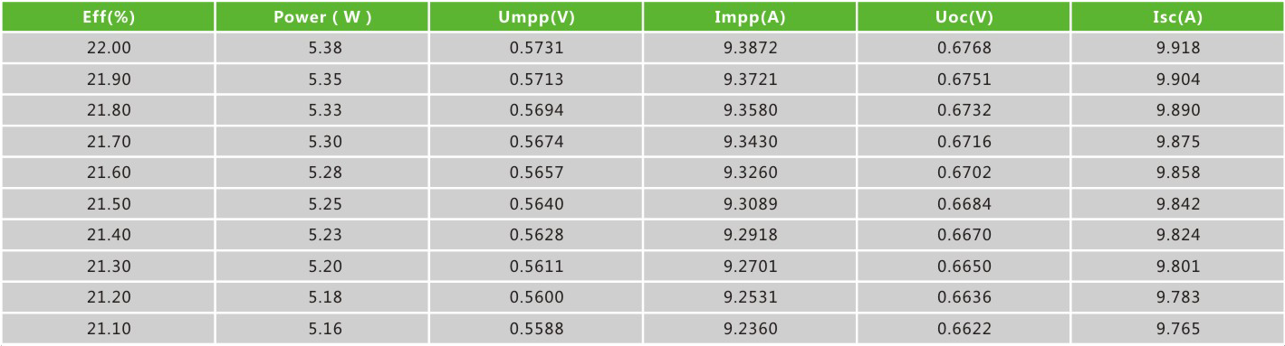 The product specification of monocrystal solar cell <br/>-156M-5BB