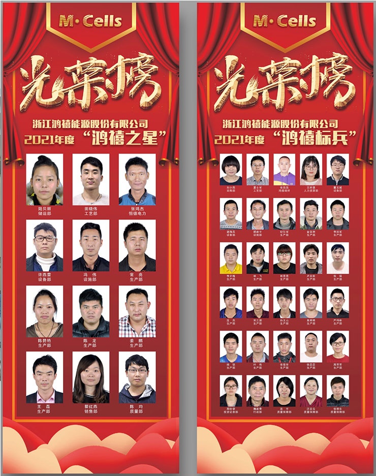 在過去的2021年度里,公司各項工作取得了一定的成功,并涌現出一大批兢兢業業、勤勤懇懇、盡責盡職的優秀員工。2021年度共評選出“鴻禧之星”12名、“鴻禧標兵”30名。此處掌聲祝賀他們!